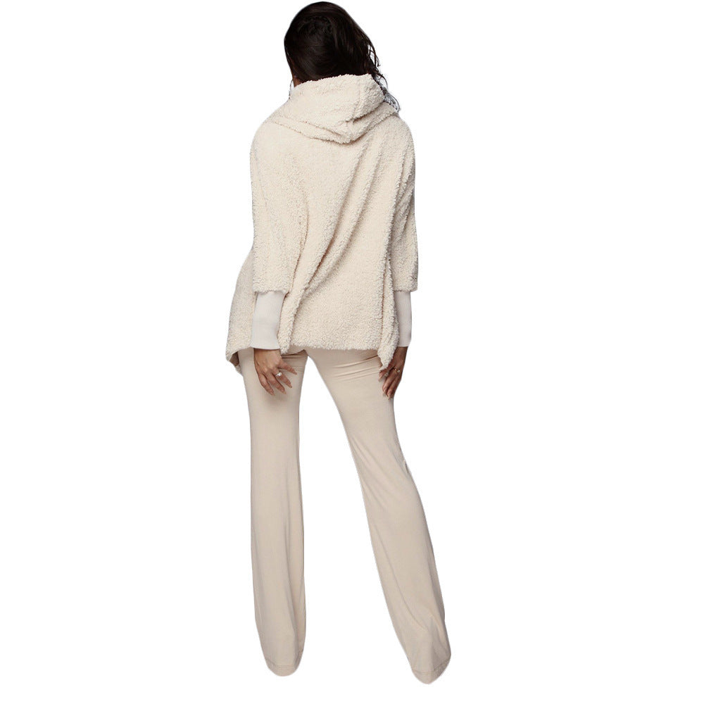 Adogirl Women Fleece Plush Casual Two Piece Set Long Sleeve Hooded Cardigan Coat Autumn Winter Outwear Shorts Fashion Outfits