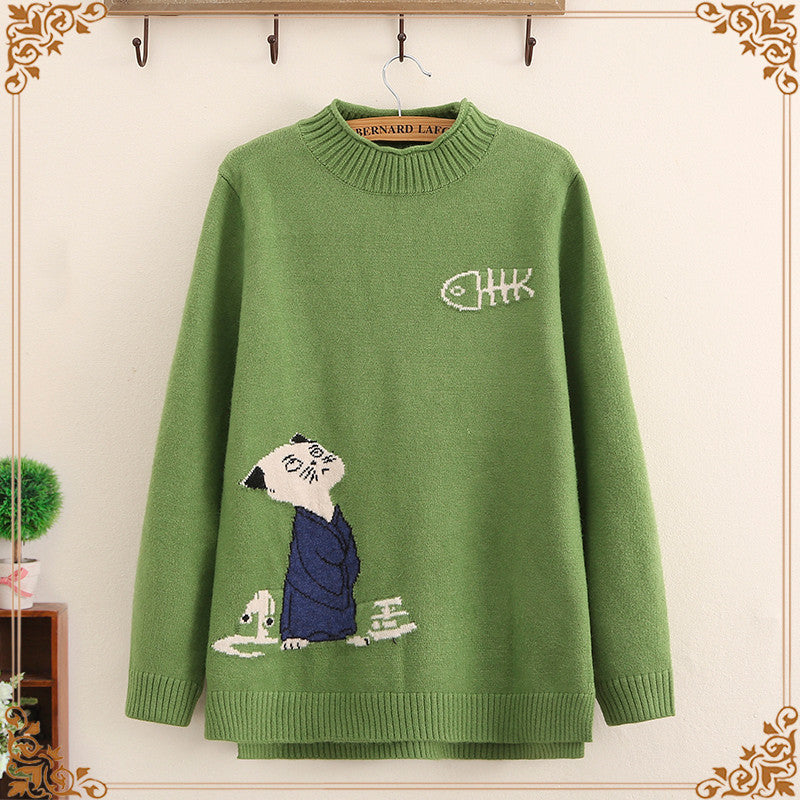 Product parameters: Functionality: keep warm Pattern: cartoon animation Style: sweet Collar: Half high collar Yarn thickness: regular Sleeve type: raglan...