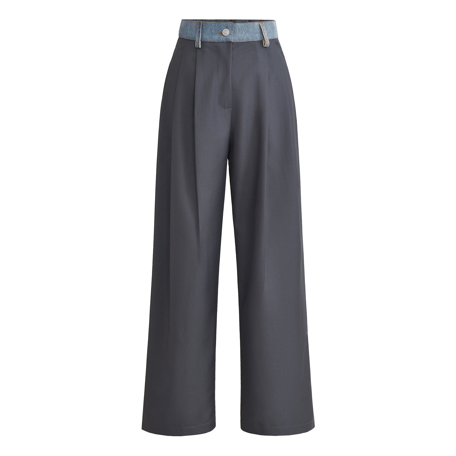 Color Contrast Patchwork Denim Waist High Waist Loose Straight Casual Pants