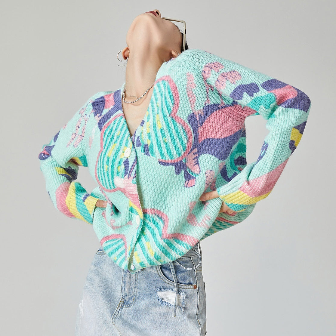 Dopamine Lake Blue Rainbow Gradient Knitted Sweater